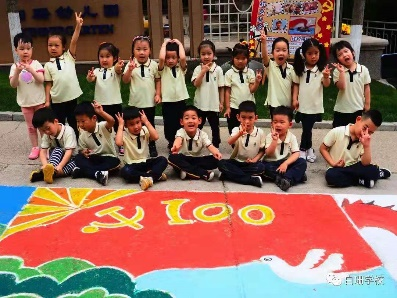 3.6月30日,我校幼儿园开展了“童心向党、薪火相传”彩绘未来活动。在党支部书记的带领下,党员教师面向党旗庄严宣誓,不忘入党初心,牢记教育使命。幼儿园孩子用稚嫩的双手、颗颗红心、张张笑脸、20多米长的画卷,描绘着盛世中国、百年辉煌。通过观影 “闪闪的红星”、“鸡毛信”、“地雷战”等红色经典影片,达到对幼儿心灵洗礼的目的,牢记革命英雄和党的故事,长大后为祖国做贡献,创造中国好未来。